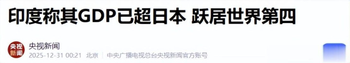 中央广播电视总台央视新闻官方账号——印度称其GDP已超日本 跃居世界第四