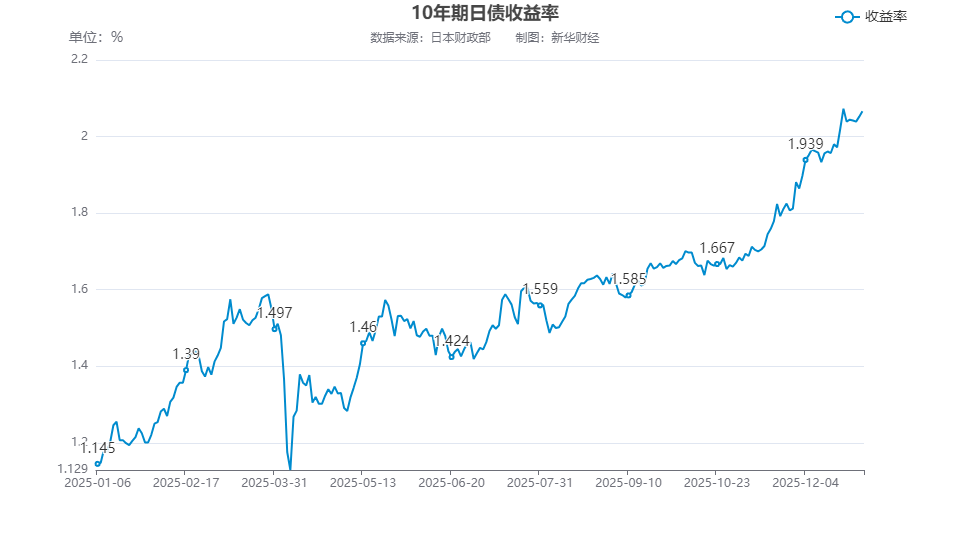 通胀方面,全年核心CPI均值约3.2%,连续44个月高于日本央行2%目标。成本推动为主,但下半年服务价格因薪资上涨显现内生压力。日本央行于12月19日将政策利率上调至0.75%(30年新高),标志货币政策转向控通胀。10年期国债收益率12月29日升至2.03%。