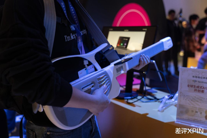他们联合阿里云推出了全球首款生成式 AI 吉他 TemPolor Melo-D ,你可以看到,这玩意儿长得跟普通吉他不太一样,并且还有翻转屏幕和会发光的彩虹琴弦,主打一个赛博。