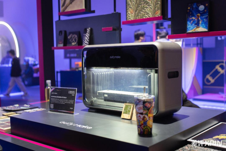 比如前面咱们讲到的安克,现场除了有 eufyMake 3D 纹理 UV 打印机外,还展出了 AI 智能体耳机 Soundcore AeroFit 2。