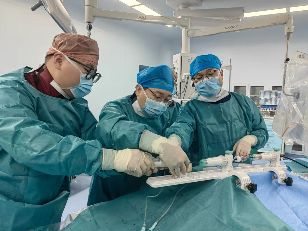 患者为75岁男性,因“活动后胸闷1月余”入院,经诊断存在慢性心力衰竭、二尖瓣重度反流(4+)、后叶脱垂、部分腱索断裂、三尖瓣重度反流、重度肺动脉高压等多种高危病症,同时合并高血压病3级、颈动脉硬化、支气管炎及肺结节等基础疾病。入院后,科室予以药物积极纠正心功能治疗,并完善冠状动脉CTA检查,结果显示冠状动脉轻度狭窄。经心脏大血管外科会诊,建议行二尖瓣手术治疗。由于患者高龄、心功能差、存在桶状胸及肺功能不佳等问题,传统开胸手术风险极高。经多学科讨论,团队最终决定行创伤小、恢复快的经皮二尖瓣钳夹术(TEER)。该术式作为高龄及外科高危的二尖瓣重度关闭不全病人的有效治疗方式,具有创伤小、术后恢复快等优势。