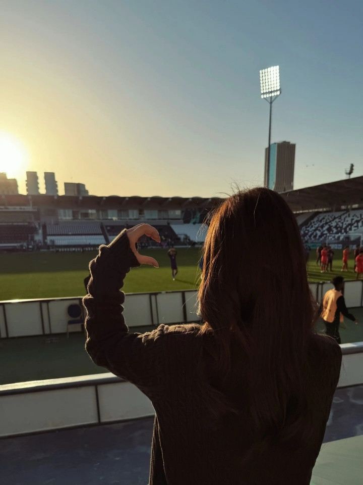 在出线之后,李昊向看台的女友挥手,并且做出比心的手势。李昊的女友也来到沙特的现场助威。