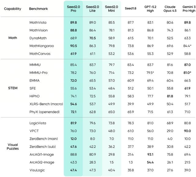 豆包2.0在IMO、CMO数学竞赛和ICPC编程竞赛中获得金牌成绩,在Putnam基准测试上超越了Gemini3Pro。